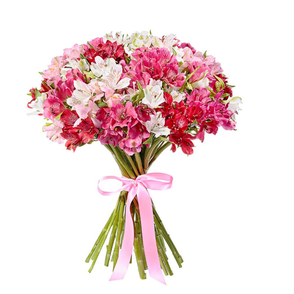 лента атласная (розовый) – 1 шт.альстромерия (белый) – 3 шт.альстромерия (красный) – 2 шт.альстромерия (малиновый) – 3 шт.альстромерия (розовый) – 3 шт.
