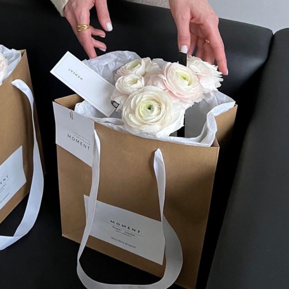 Тишью – 2 шт.Крафт – 2 шт.Ранункулюс – 5 шт.Карточка для подписи – 1 шт.крафтовый пакет – 1 шт.