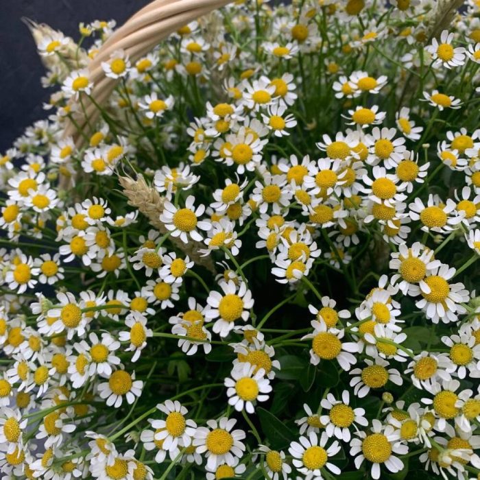 Матрикария – 25 шт.триникум колосья – 30 шт.Оазис флористический – 1 шт.Корзина плетеная – 1 шт.