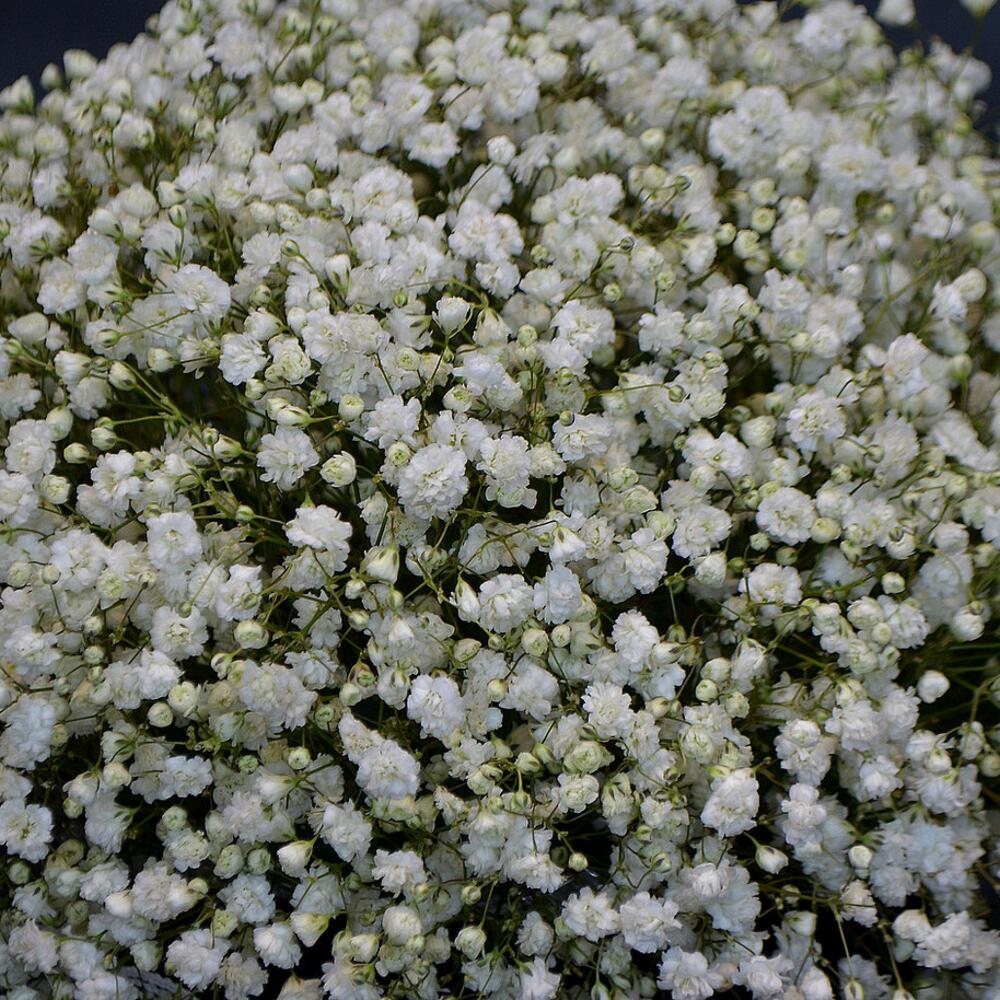 Черная шляпная коробка – 1 шт.гипсофила белая – 15 шт.