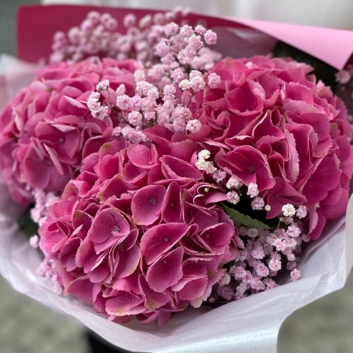 Гипсофила – 3 шт.Гортензия – 3 шт.Лента атласная – 1 шт.Упаковка дизайнерская – 1 шт.