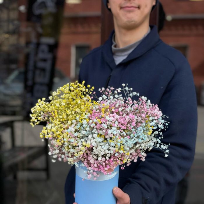 Коробочка с разноцветной гипсофилой