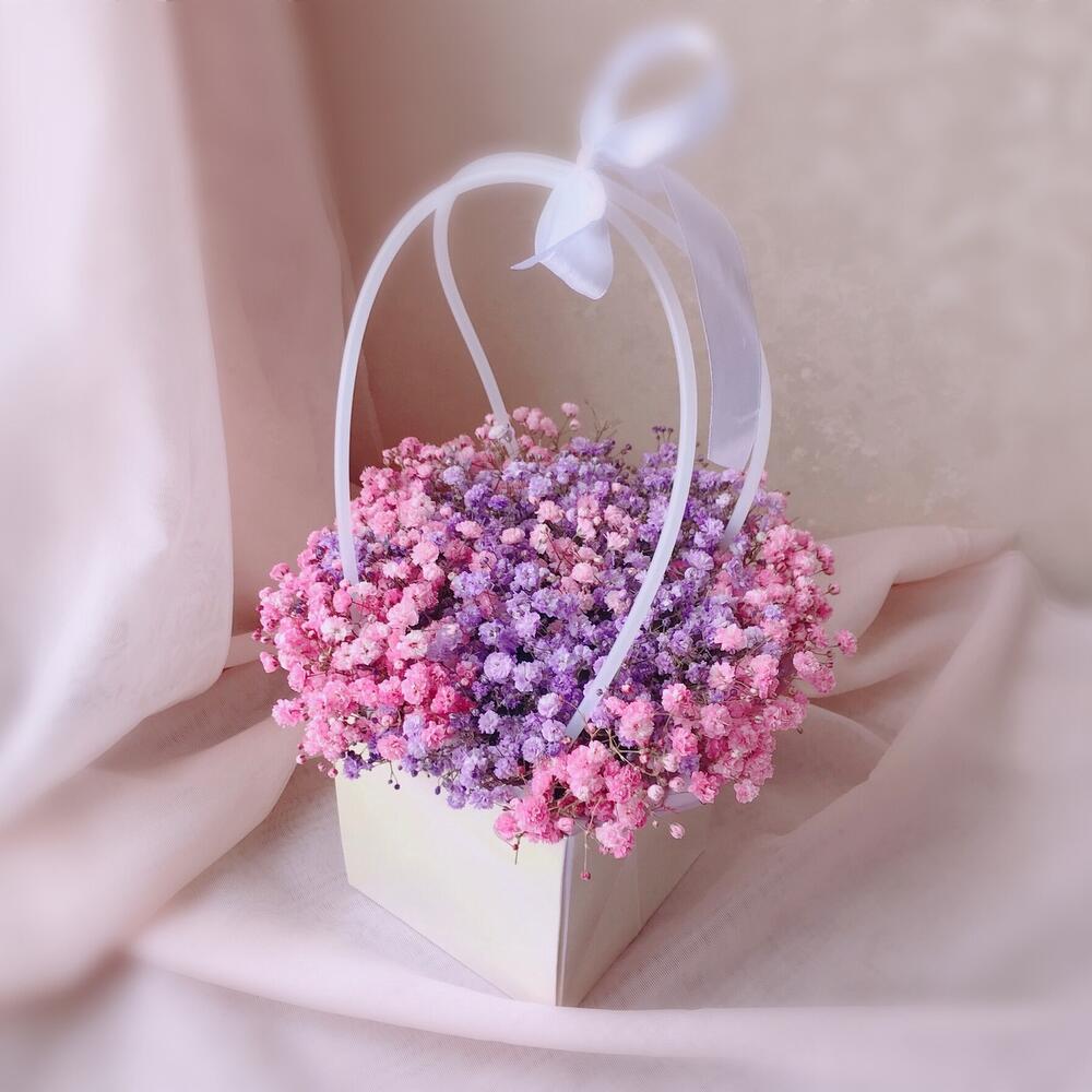 Сумочка – 1 шт.Флористическая губка – 1 шт.Инструкция по уходу – 1 шт.гипсофила радужная – 3 шт.