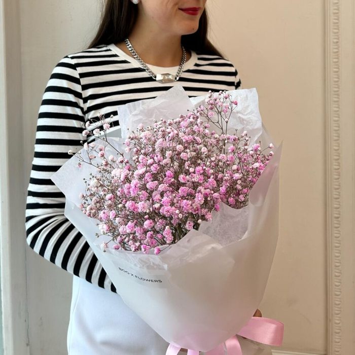 Букет из розовых гипсофил в дизайнерской упаковке.Гипсофилы отличаются отличной стойкостью и со временем превращаются в сухоцвет.Что входит в наш сервис:- транспортировочная упаковка к каждому заказк- кризал в подарок- подпишем открытку с вашим поздравлением- подберем … Показать ещёшарики к букету по запросу (за дополнительную плату)