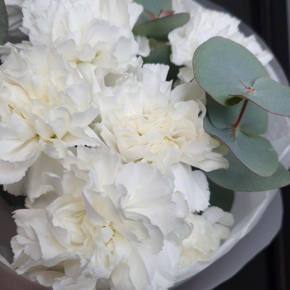 Белоснежные диантусы с эвкалиптом