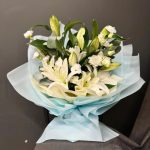 Лизиантус – 2 шт.Лилия – 3 шт.Гвоздика кустовая – 3 шт.Упаковка дизайнерская – 1 шт.