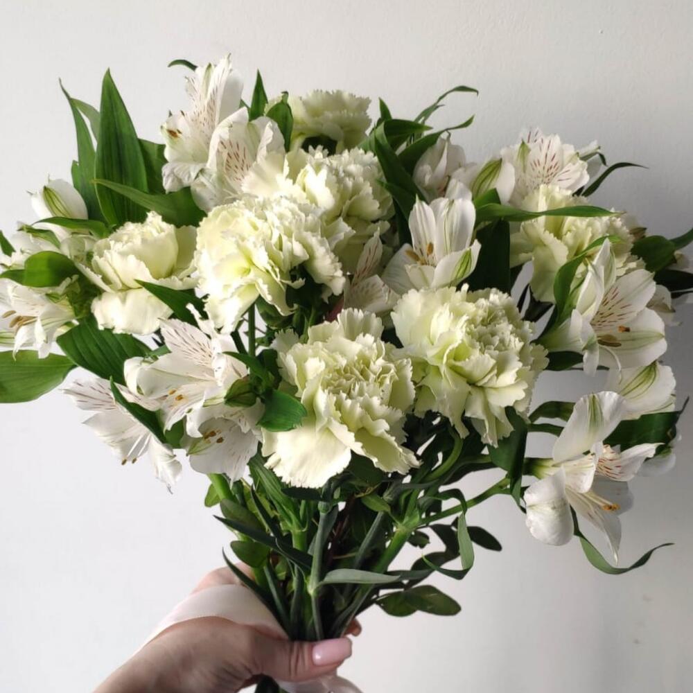 Альстромерия – 5 шт.Диантус – 6 шт.зелень фисташки – 3 шт.