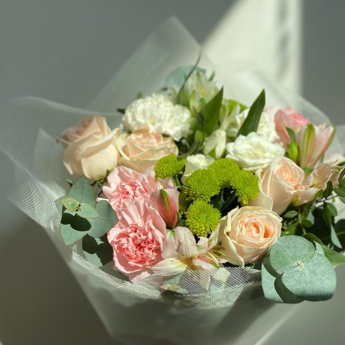 Букет кустовых роз и альстромерии «Сливки»
