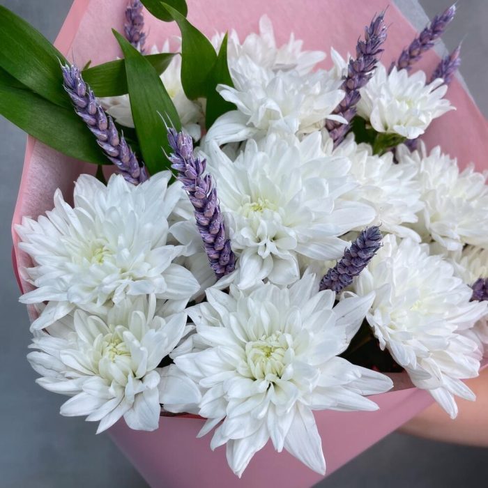 Хризантема кустовая – 3 шт.Тритикум(пшеница) – 9 шт.Фисташка – 1 шт.Упаковка – 1 шт.