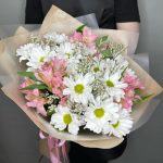 Букет ромашки, розовые альстромерии и лимониум. WISTERIA FLOWERS