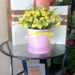 “Сиреневый туман” – композиция из гипсофилы в шляпной коробке
