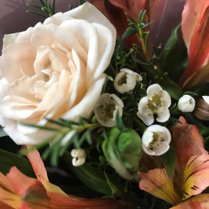 Альстромерия – 4 шт.Роза кустовая – 3 шт.Ваксфлауэр – 1 шт.