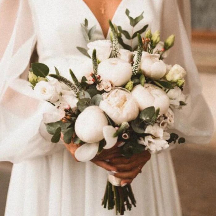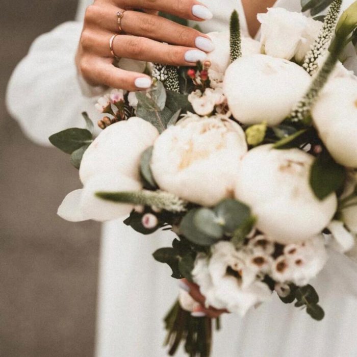 Нежный свадебный букет из пионов