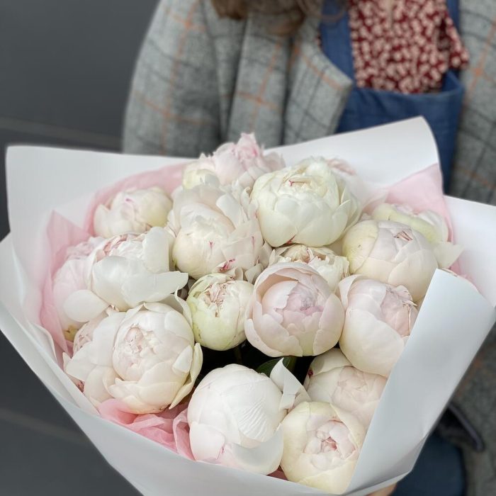 Большой Монобукет из Крупных белых Итальянских пионов