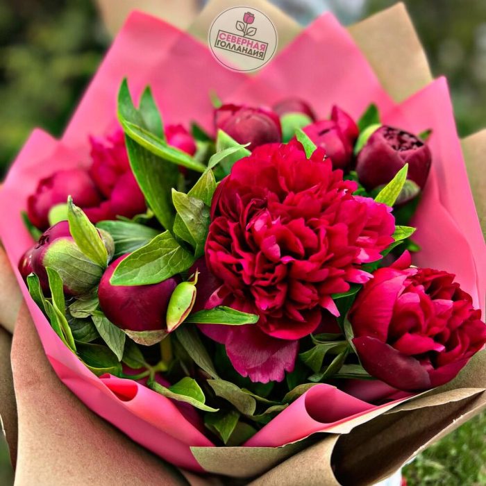 Крафт – 1 шт.Пион красный – 15 шт.Пленка матовая – 1 шт.