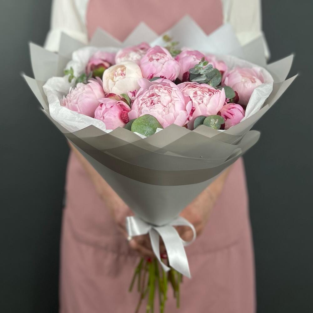 Букет из розовых Пионов Сара Бернар (15 шт)