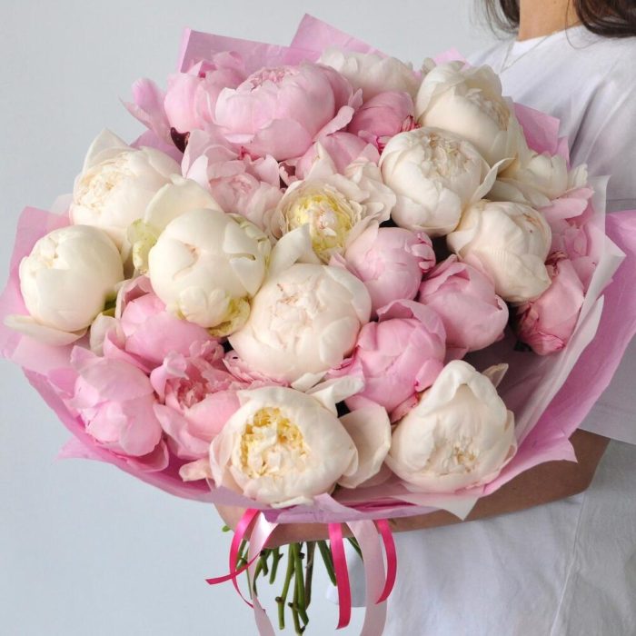 Пион – 25 шт.Лента атласная – 1 шт.Упаковка дизайнерская – 2 шт.