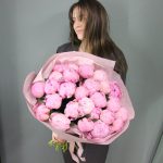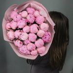 Букет из 25 пионов в лаконичной упаковке.Стильное цветочное решение для любого случая.
