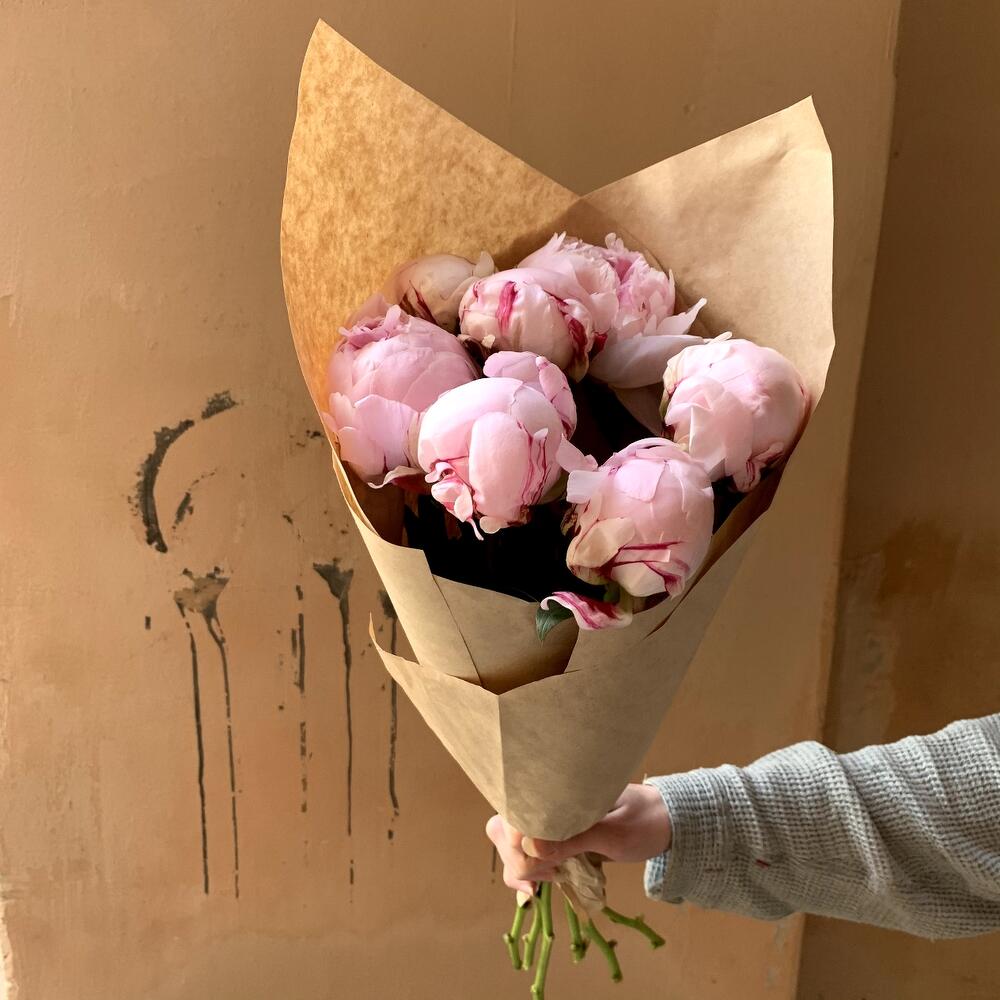 Крафтовая упаковка – 1 шт.Пион розовый – 7 шт.