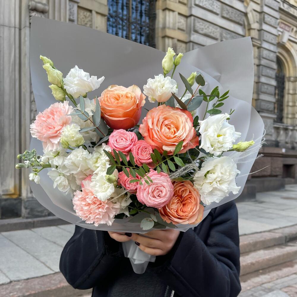 Категорий: Гвоздики, Кустовые розы, Лизиантусы, Пионовидные розы, Розы