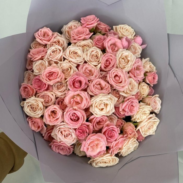 кустовая роза микс – 31 шт.Упаковка – 3 шт.Атласная лента – 1 шт.