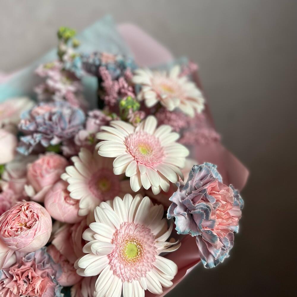 Категорий: Гвоздики, Герберы, Кустовые розы, Пионовидные розы, Розы, Хризантемы