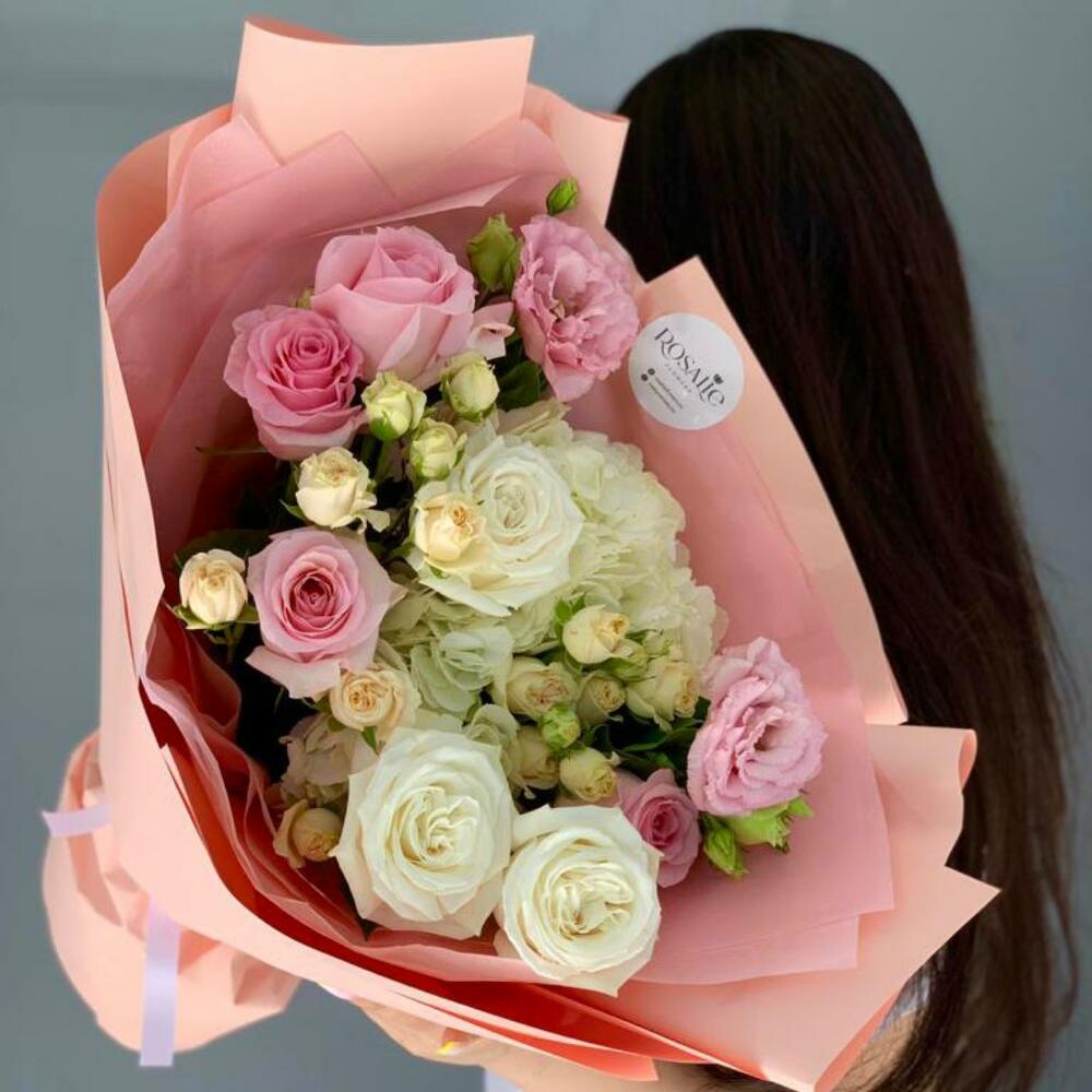 Альстромерии, Кустовые розы, Лизиантусы, Пионовидные розы, Розы, Ромашки