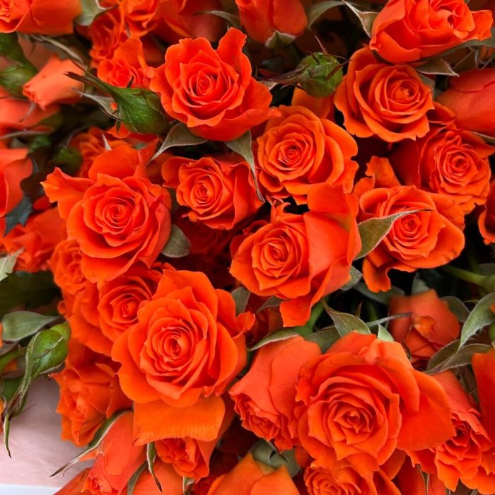 Роза оранжевая 60 см – 15 шт.Дизайнерская упаковка – 5 шт.Тишью – 2 шт.Лента атласная – 2 шт.