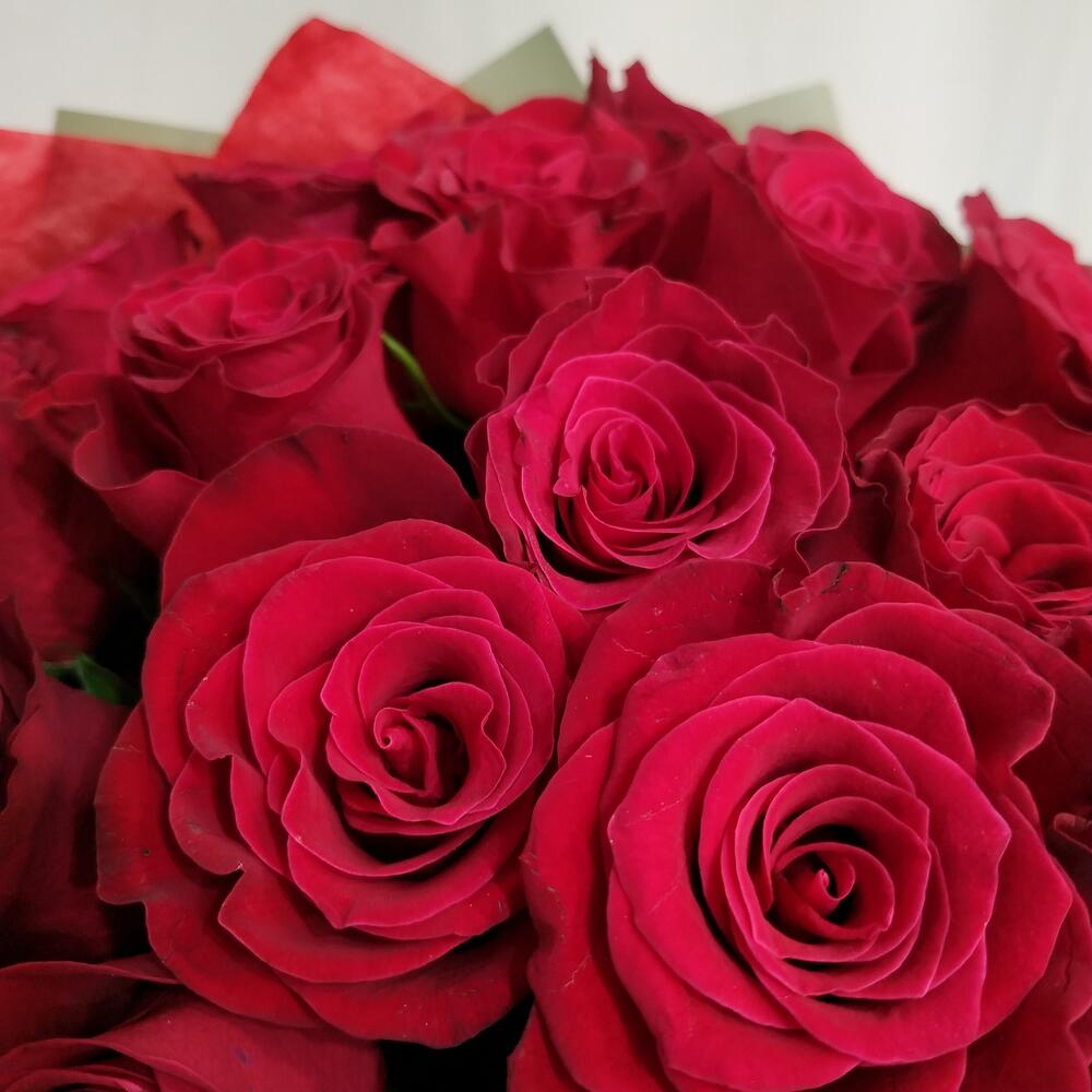Лента атласная – 1 шт.Бумага – 1 шт.Тишью красное – 1 шт.роза кения – 25 шт.