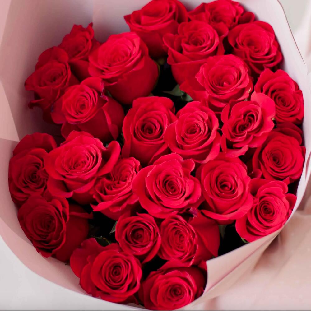 Букет из 25 красных роз (Эквадор) 70 см Freedom в розовой пленке