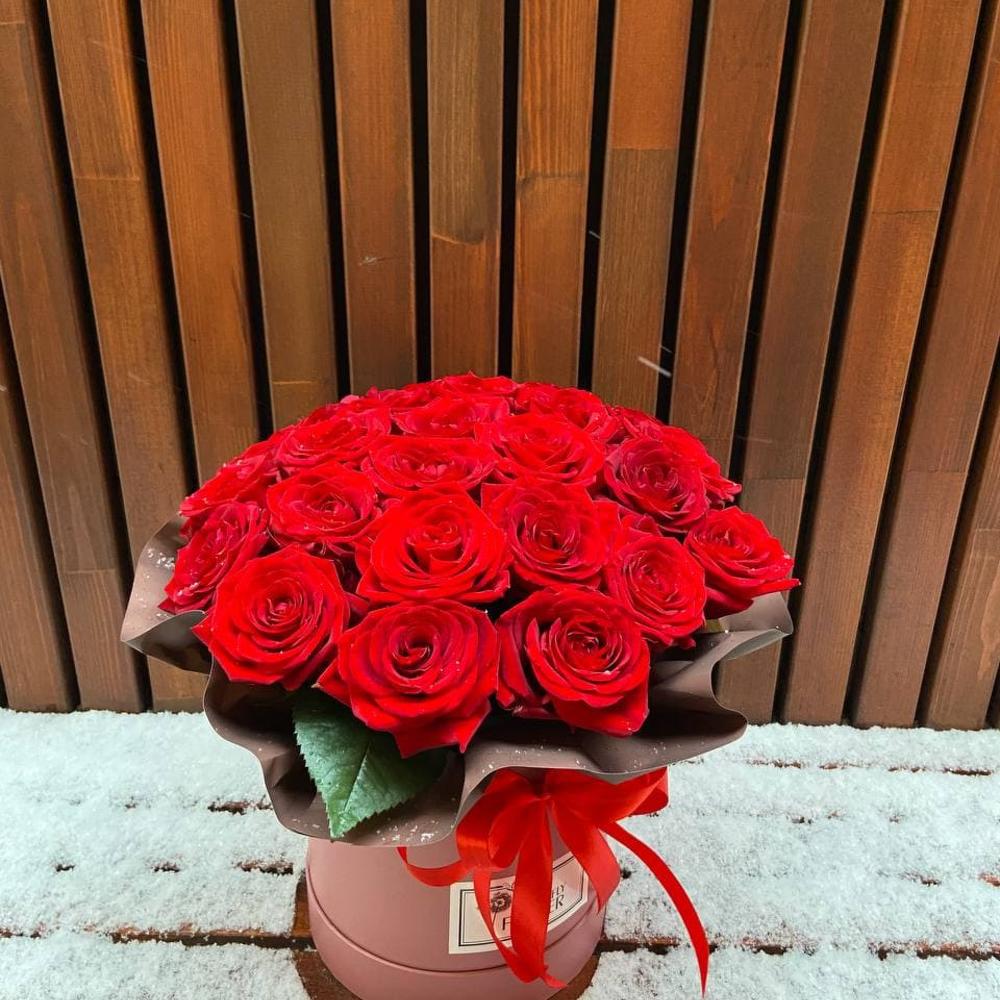 БУКЕТ ИЗ 25 РОЗ В ШЛЯПНОЙ КОРОБКЕ «БЛАГОРОДСТВО»