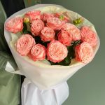 Букет кустовых пионовидных розовых роз «Очаровательной Леди»