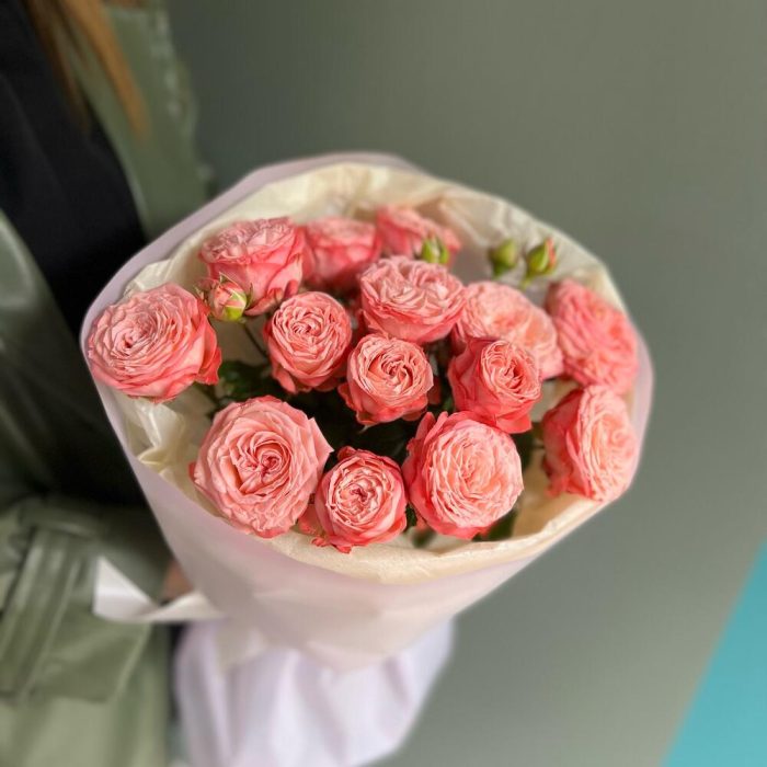 Букет кустовых пионовидных розовых роз «Очаровательной Леди»
