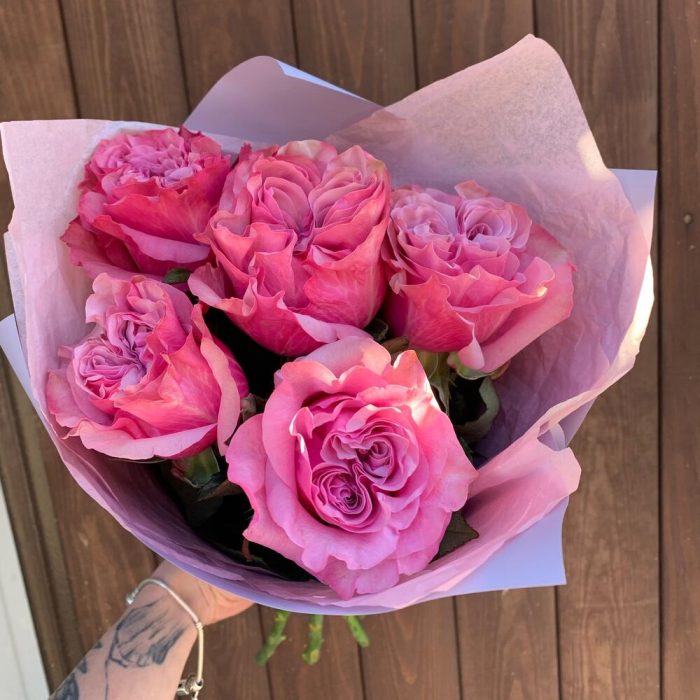 Букет из 5 розовых французских роз