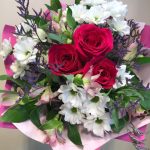 Букет из цикломеновых роз и белой хризантемы бакарди