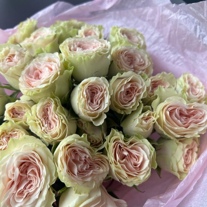 Кустовая пионовидная роза – 9 шт.декоративная упаковка – 1 шт.Атласная лента – 1 шт.