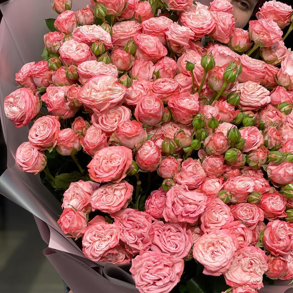 Букет из кустовой пионовидной розы “Леди Бомба”
