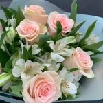 Роза – 7 шт.Альстромерия – 8 шт.Упаковка дизайнерская – 1 шт.