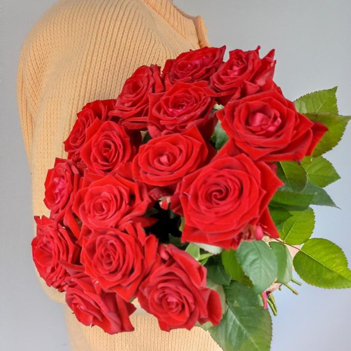 Лента атласная – 1 шт.Роза Россия – 15 шт.