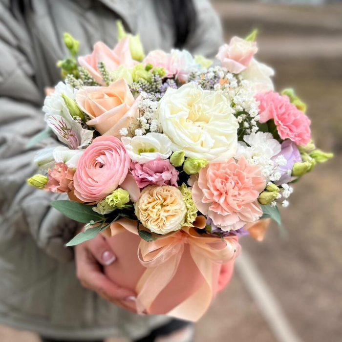 “В твоих глазах”: нежная шляпная коробка с французскими розами