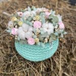 Композиция из сухоцветов и стабилизированных цветов , в вязаном кашпо , ручной работы