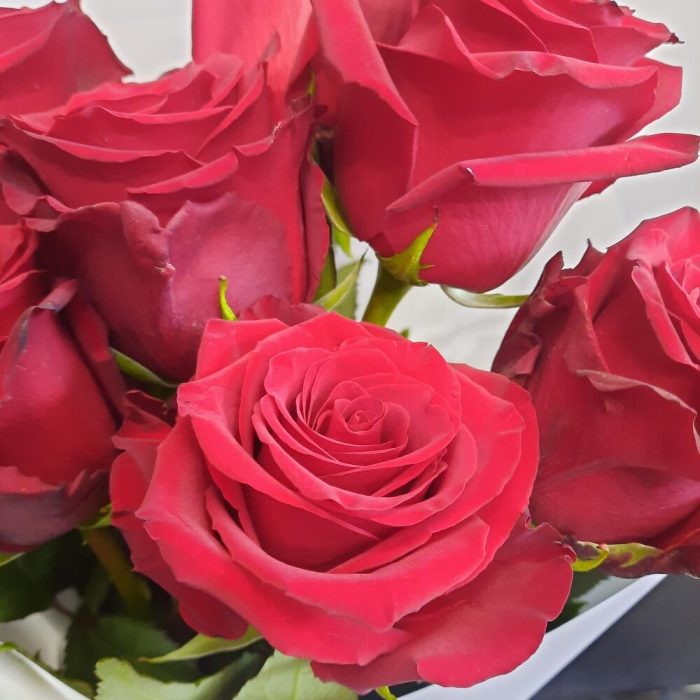 Роза Эквадор 60 см – 7 шт.Калька упаковка – 1 шт.Лента атласная – 2 шт.