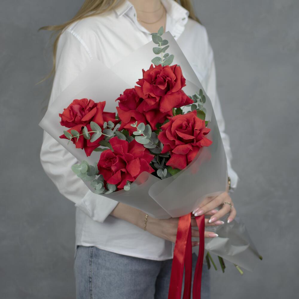 роза французская нина – 5 шт.Эвкалипт – 4 шт.Упаковка – 2 шт.