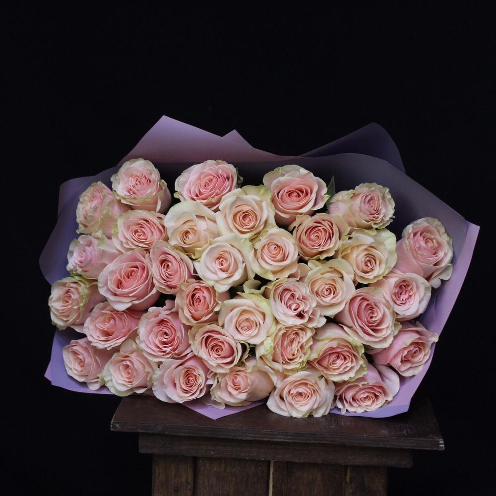 роза фруттето – 35 шт.Пленка дизайнерская – 3 шт.Лента атласная – 1 шт.