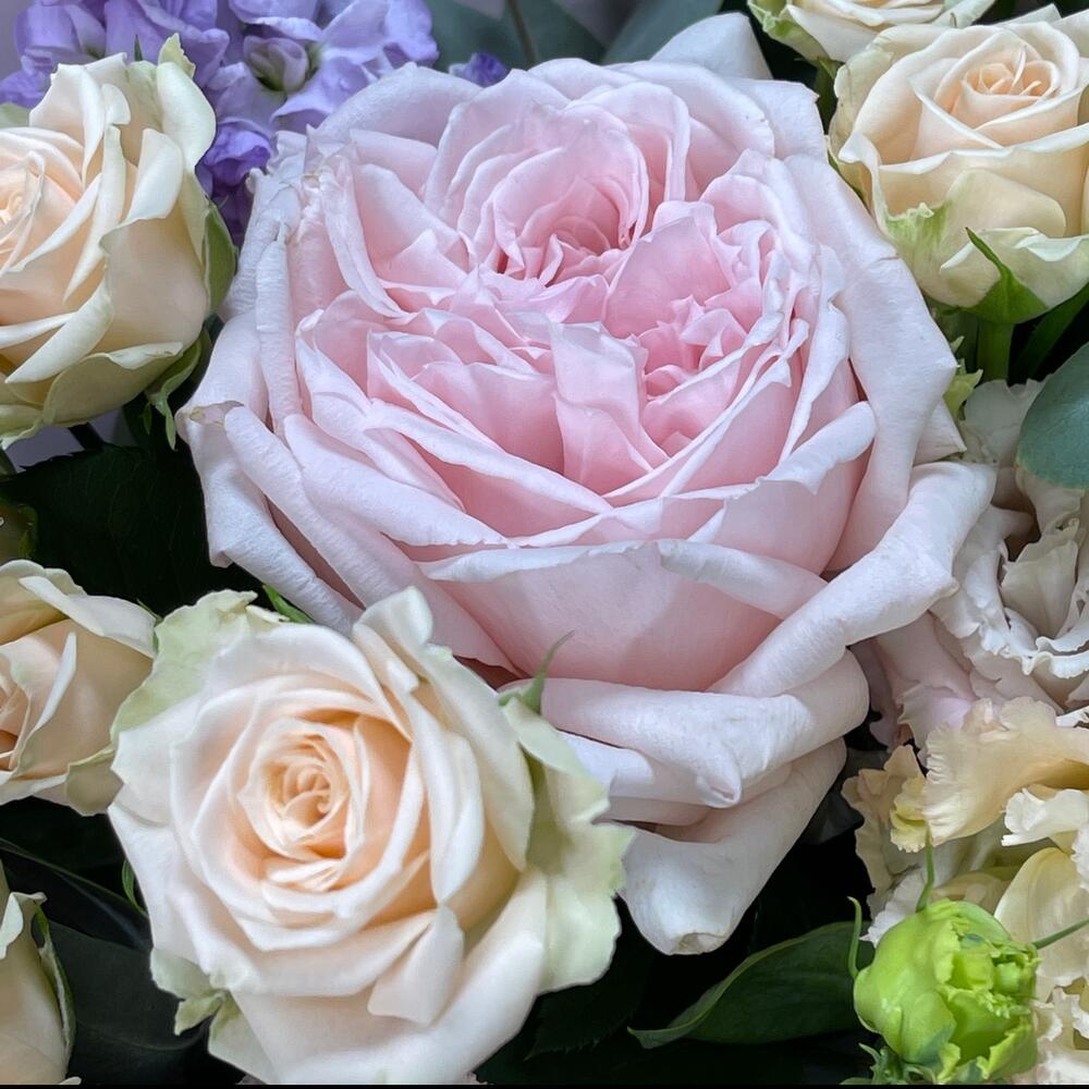 Наше Новолуние – это акварельный букет собранный с розами, гвоздикой, маттиолой и лизиантусом и оформленный в приятную упаковку. Мы также подобрали по цвету ленты.По вашему желанию мы добавим к букету открытку с самыми тёплыми словами.Букет будет бережно упакован в прозрачную плёнку от непогоды. Рекомендации по уходу:Перед тем, как поставить букет в воду, мы рекомендуем снять упаковку, освежить срез стеблей, чтобы устранить воздушную пробку, образовавшуюся за время доставки. Затем налить в вазу чистую прохладную воду, развести пакетик подкормки для срезанных цветов и поставить букет.Выбирая место для вазы с цветами, рекомендуем избегать прямых солнечных лучей, отопительных приборов и сквозняков.Замена воды и подрезка стеблей не реже 1 раза в 2-3 дня.Замечательным дополнением к букету может стать мягкая игрушка, набор свечей или стильная ваза.Желаем вам приятных покупок!