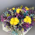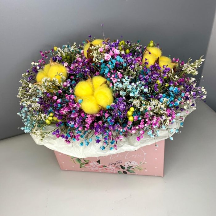 Разноцветная композиция из сухоцветов в нежной коробке