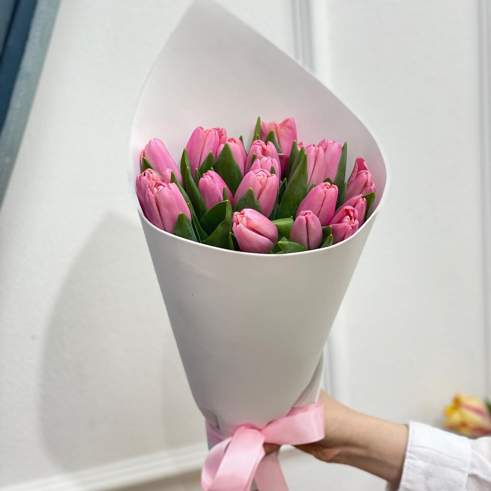 Если сложно выбрать цвет у тюльпанов, бери всегда розовый!Беспроигрышный вариант.Отличный букет для дамы сердца