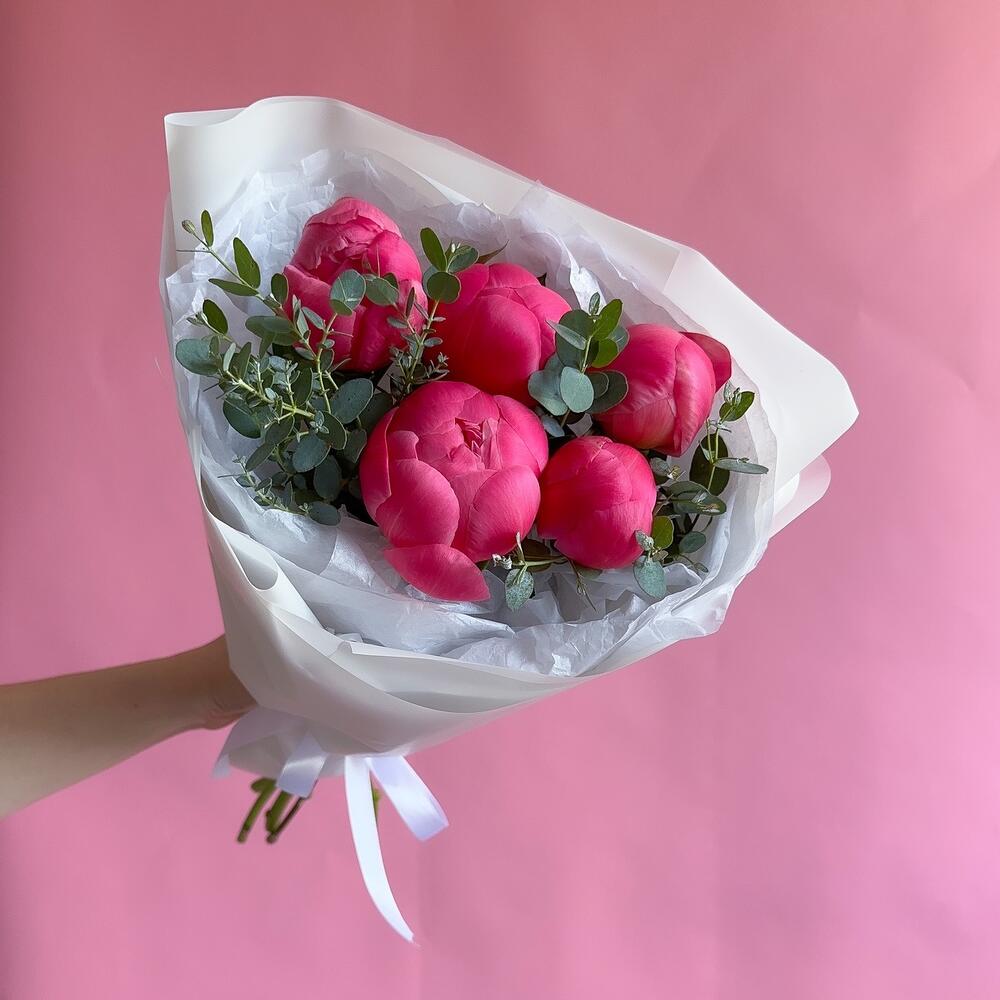 Букет из 5 пионов Корал Шарм