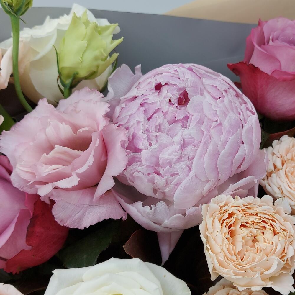 Категорий: Гвоздики, Кустовые розы, Лизиантусы, Пионы, Розы